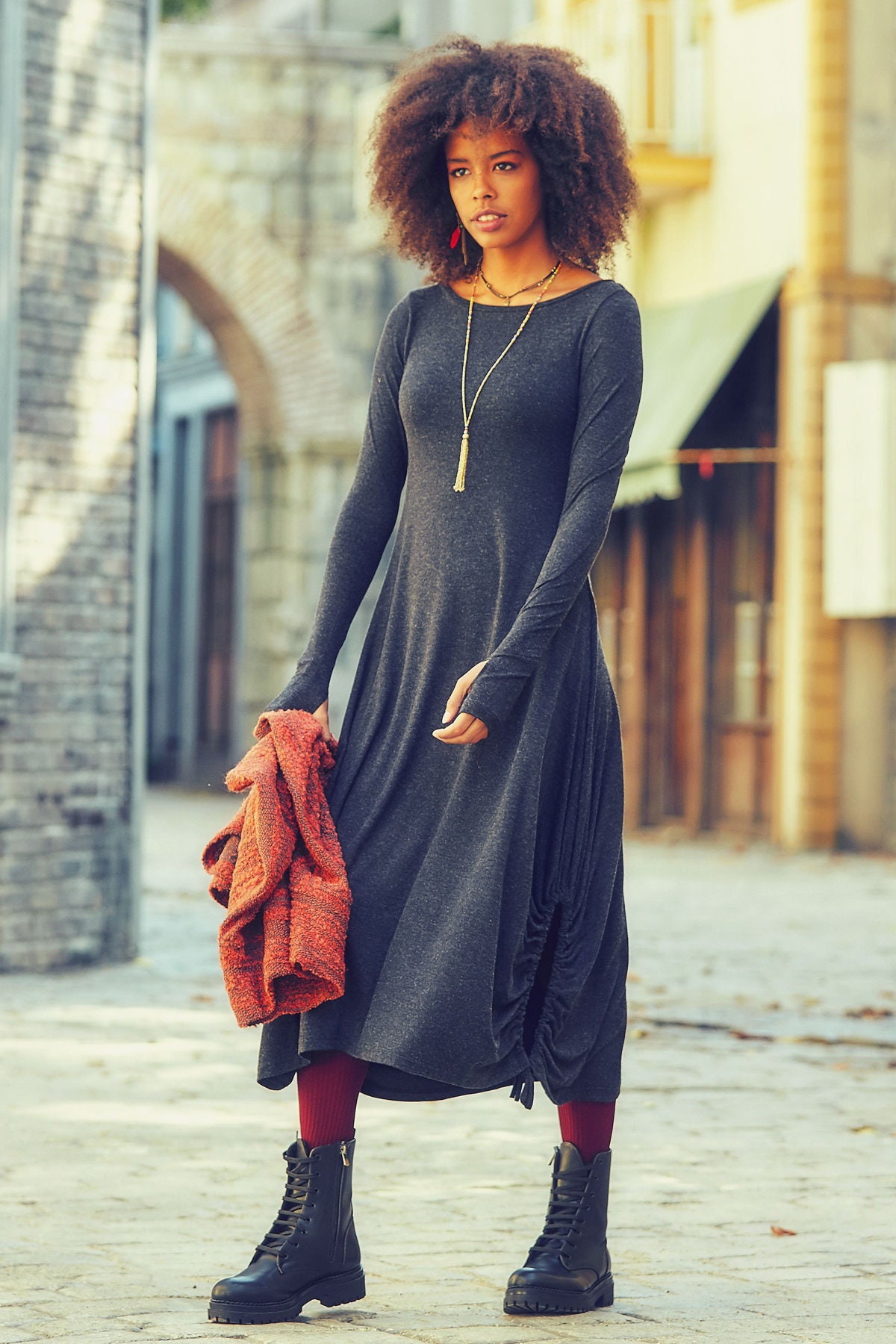 Bohemian Long Sleeve Dress: Vintage Style With Side